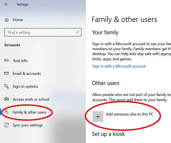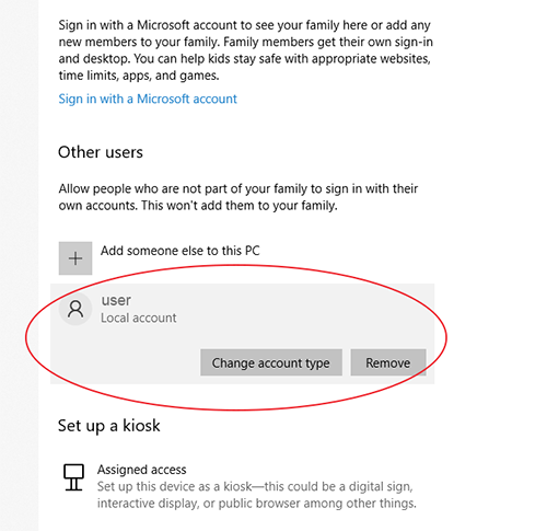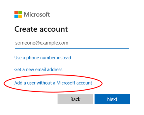 5. In the next pop up window, select [Add a user without a Microsoft account]: