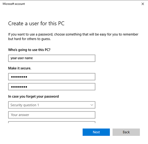 you will be asked to choose 3 security questions for recovery purpose. Mark down your answers and keep it in a safe place in case you need to recover your password. Then click [Next] to complete: